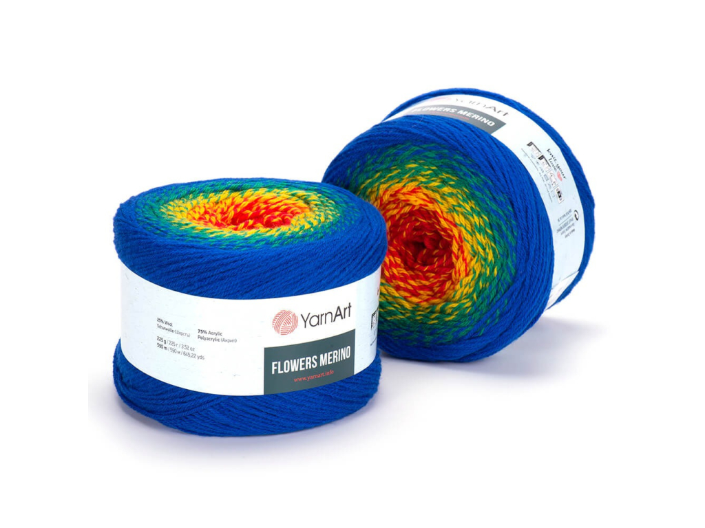 Flowers Merino má nádherné farebné prechody. Farby prechádzajú jedna do druhej a v klbku sa už neopakujú. Rozličné farebné kombinácie zaručia jedinečnosť vášho výrobku.