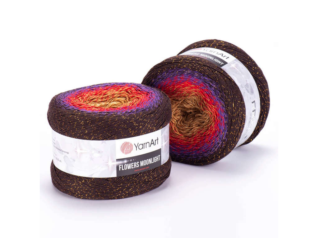 Dúhové, ligotavé, čarovné klbko, kde farby prechádzajú postupne jedna do druhej je nástupcom obľúbenej priadze Flowers od tureckého výrobcu YarnArt. Priadza je spletená zo štyroch nitiek z bavlny, akrylu a metalického vlákna. Priadza vytvára krásne postupný prechod farieb a metalické vlákno dodáva elegantný ligotavý nádych.