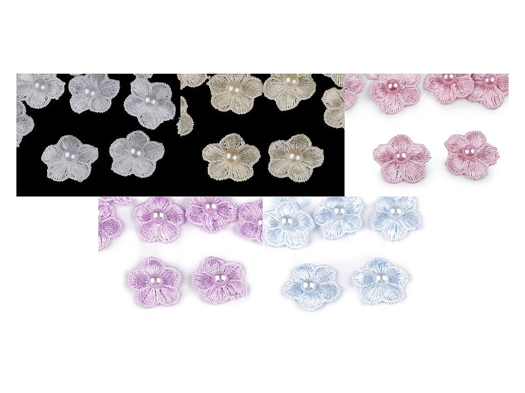Vyšívaný kvet Ø2 cm s perlou